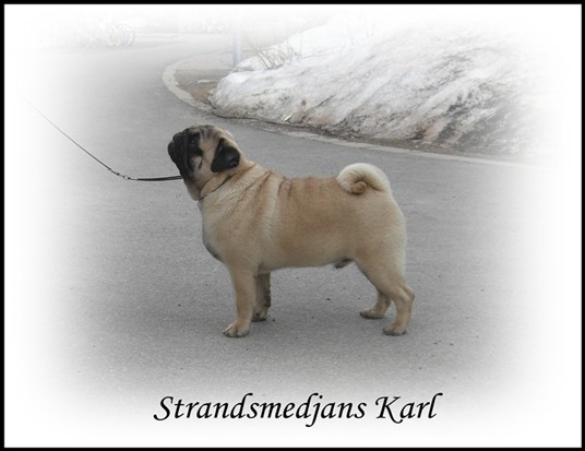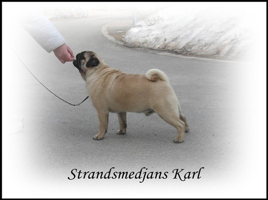 Har anmält honom till några utställningar i sommar, vi har tränat att stå still som inte är så lätt med en busig MOPS=);)