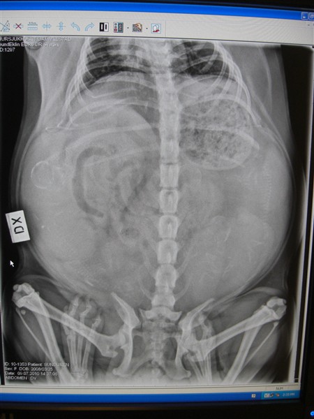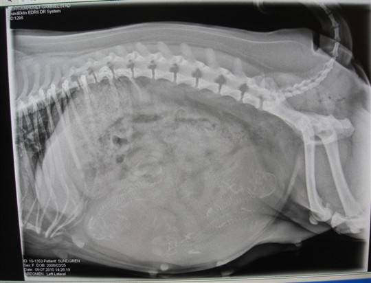 Och så till Doris...röntgat henne idag för att se hur många puppisar som finns där inne...och 5 små bäbismopsar finns det i magen